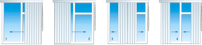 1. ламелі рухаються в сторону, протилежну мотузці управління;